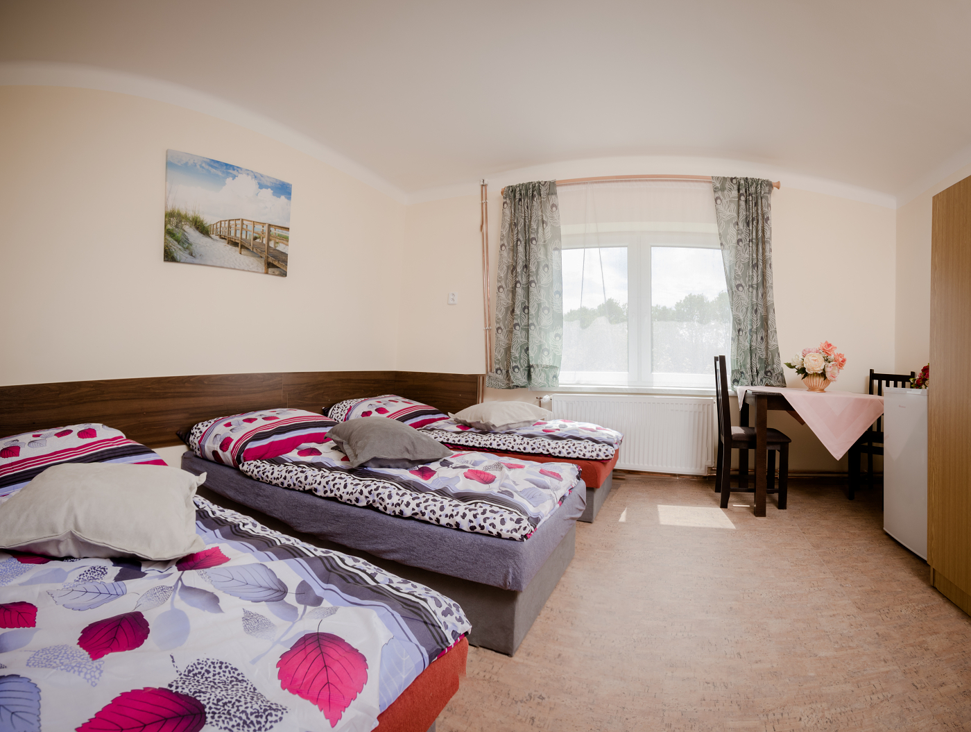 Složení pokojů/lůžek: 6x třílůžkový pokoj, 2x čtyřlůžkový pokoj, 2x dvoulůžkový pokoj.